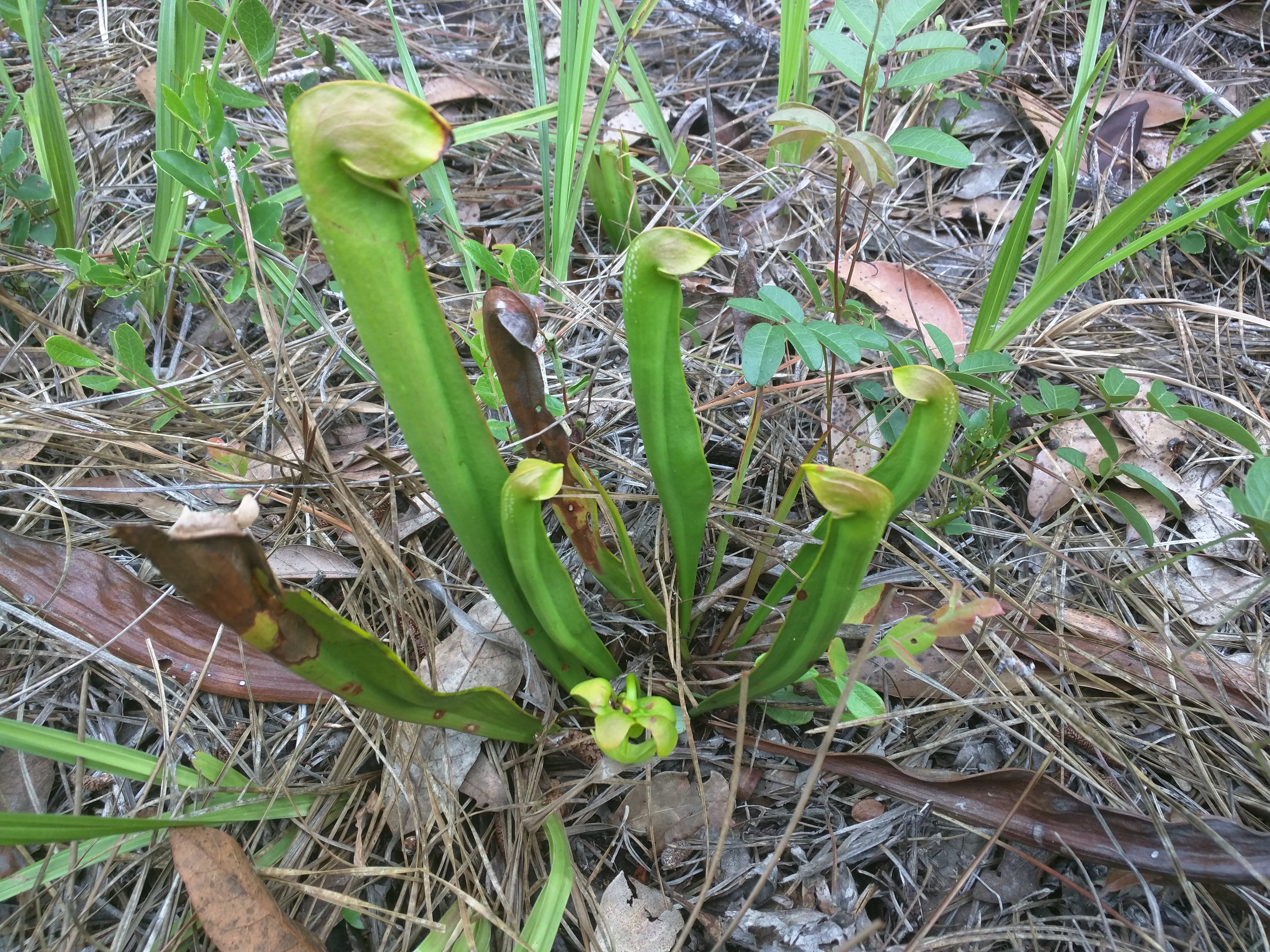 Finally! We found a small cluster of Sarracenia minor. One of them even had a flower on it.